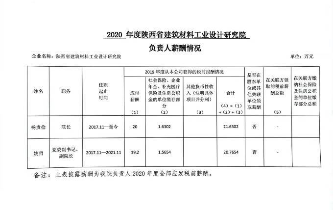 • 2020年度陜西省建筑材料工業(yè)設(shè)計(jì)研究院負(fù)責(zé)人薪酬情況公示